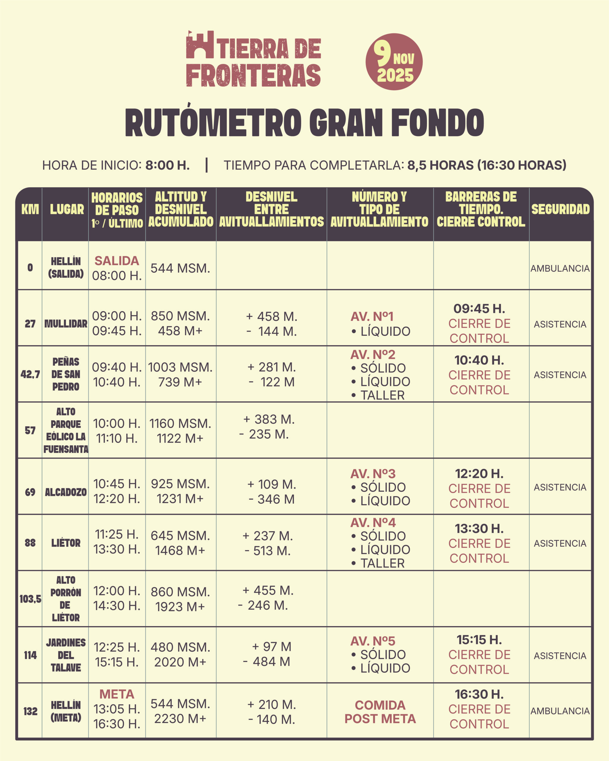 Horario salida recorrido Gran Fondo Gravel 08:00 desde C. Castilla La Mancha